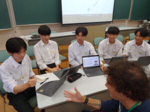 10月13日(月)に開催された出雲全日本大学選抜駅伝に出場したアイビーリーグの選手が本校を訪問し、英語の授業で交流しました。