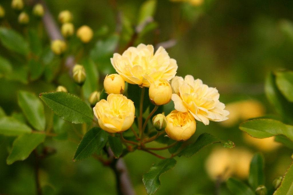 久徴園の草花(4月)は淡い黄色の花を咲かせているゲッケイジュから紹介します。