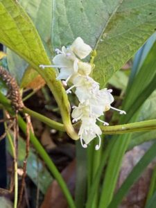 黒花という名ですが、よく見ると花は暗紫色で、ほんの5mm程度の小さな花です。草丈は1mほどに達することもあります。ヒキオコシの名前の由来は、弘法大師が病で倒れた旅人に、この草を煎じて飲ませたところ、その病人が起き上がったという伝説によるものです。