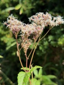 秋の七草の一つに数えられます。花の色が藤色を帯び、花弁の形が袴のようであることから、「藤袴」の名前がつきました。フジバカマは、アサギマダラという蝶が蜜を吸いに集まる花としても有名です。