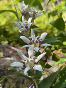 シモバシラ(霜柱)の名前の由来は、冬の時期に、枯れた茎に地中から吸い上げた水分がにじみ出て、氷の結晶のような白い柱が出来ることからとされます。ロックガーデンの奥の方にありますので、ぜひ冬の寒い時期に見つけてみてください。