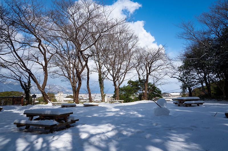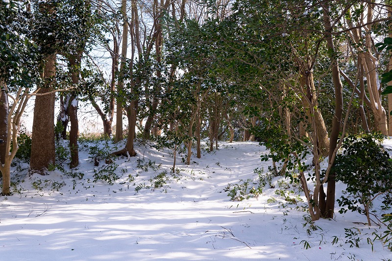 1月後半に大寒寒波、居座り寒波なるものがあらわれ、久徴園はやや湿り気の多い雪に包まれました。