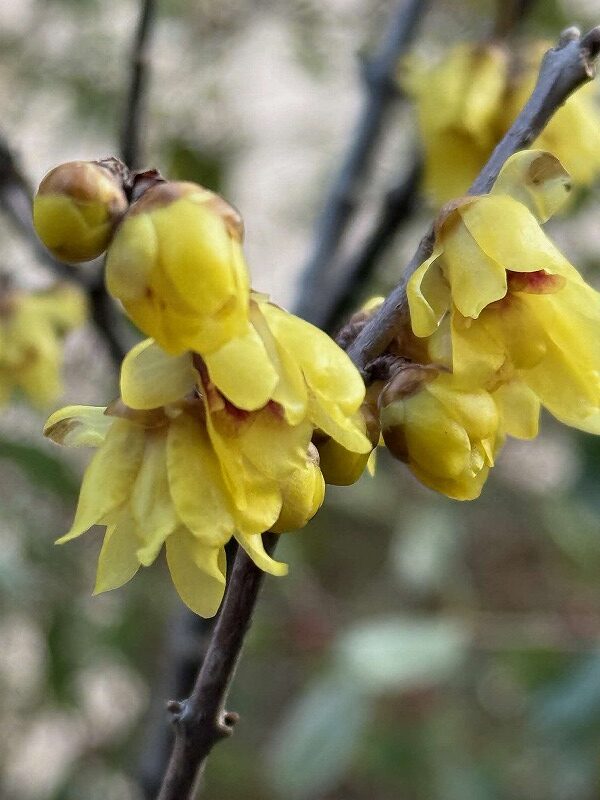 蝋細工のように繊細で美しい花と、ほのかに香る甘い香りが魅力のロウバイです。日本三大香木(ジンチョウゲ・クチナシ・キンモクセイ)にプラスしてロウバイを入れて、四大香木のひとつとも呼ばれています。漢字で「蠟梅」と書きます。花の形や開花時期などから「梅」の仲間だと思われるかもしれませんが、梅はバラ科サクラ属で桜や桃の仲間です。