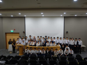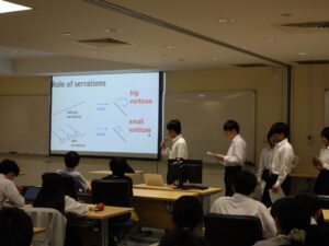 午後は南洋理工大学(NTU)を訪問し、化学班/物理班/数学班の5班が発表を行いました。午前のNUSとは異なり、こちらは大学の先生に対して発表を行いました。午前中の3班もそうでしたが、午後発表を行った5班も練習を通しても、今までで一番良い発表だったと感じました。発表だけでなく、大学の先生からの質問に対しても滞ることなく的確な応答ができている班が複数あり、とても頼もしく思えました。このシンガポール研修で多くの生徒が一番プレッシャーに感じていたのは、本日の英語による課題研究の発表だったと思います。プレッシャーや不安を感じながらも努力し、最後までやり遂げた今回の経験は間違いなく生徒にとって大きな糧となったはずです。