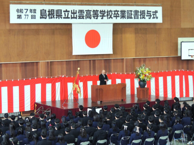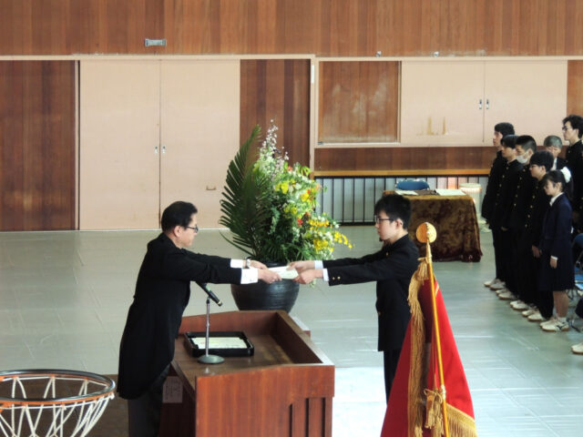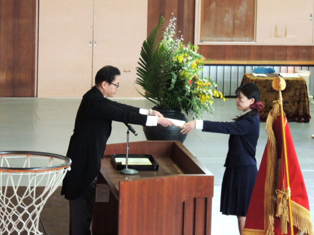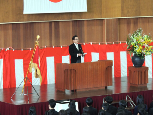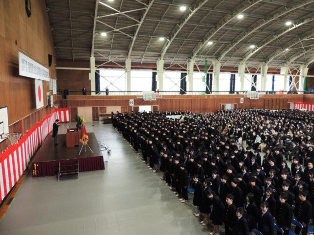 2026年3月2日(月) 卒業式を行いました。 卒業生273名が旅立ちました。ご卒業 おめでとうございます。 卒業するみなさんの新たなステージでの飛躍を応援しています。 理数科代表卒業証書授与 普通科代表卒業証書授与 卒業生273名 校長式辞 来賓祝辞 送辞 答辞 卒業生退場令和7年度第77回卒業式を行いました