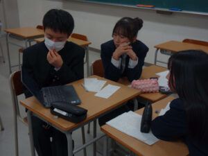 今回は各班の中での発表でしたが、質疑応答も英語で活発に行われました。