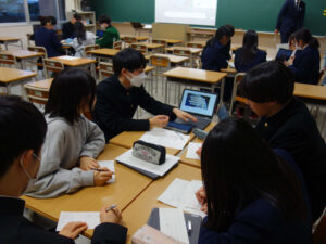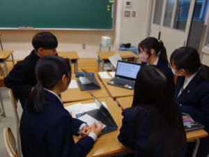 11月17日(月)放課後にGLPに参加する生徒16名が各班に分かれ、各自で参加したリーダー研修について英語で発表しました。