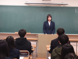 生徒代表の挨拶では海外研修に参加しただけで終わらせるのではなく、その後の学校生活や将来につなげようと語ってくれました。