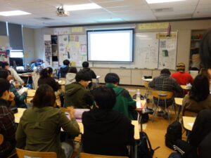 日本語の授業も開講されており、ウィルコックス高校の生徒からの日本語での質問に対して、出雲高校の生徒が英語で答えるといった場面も見られました。